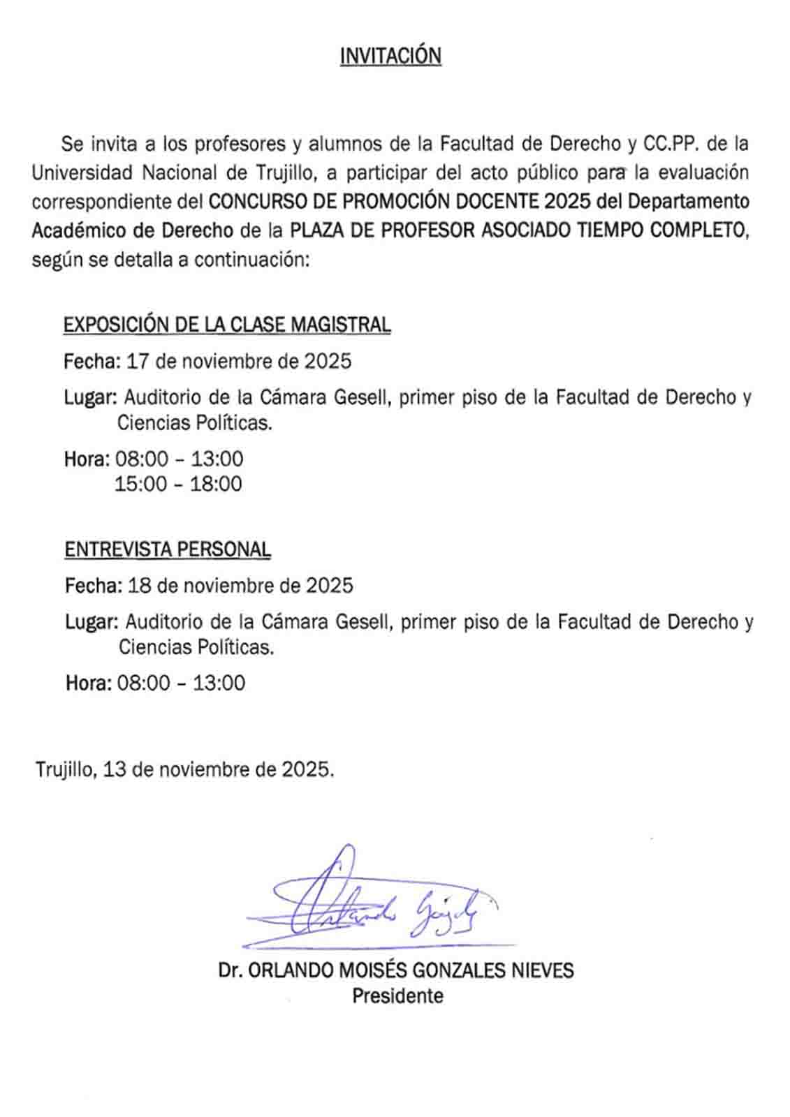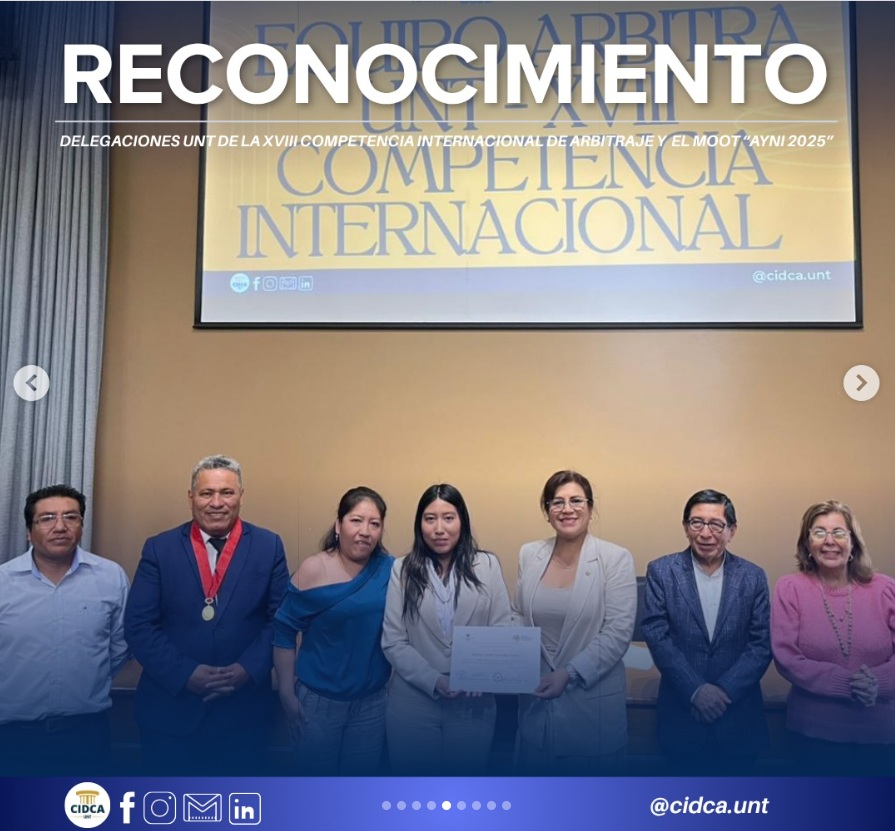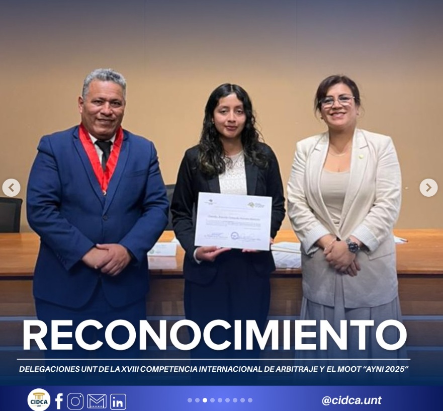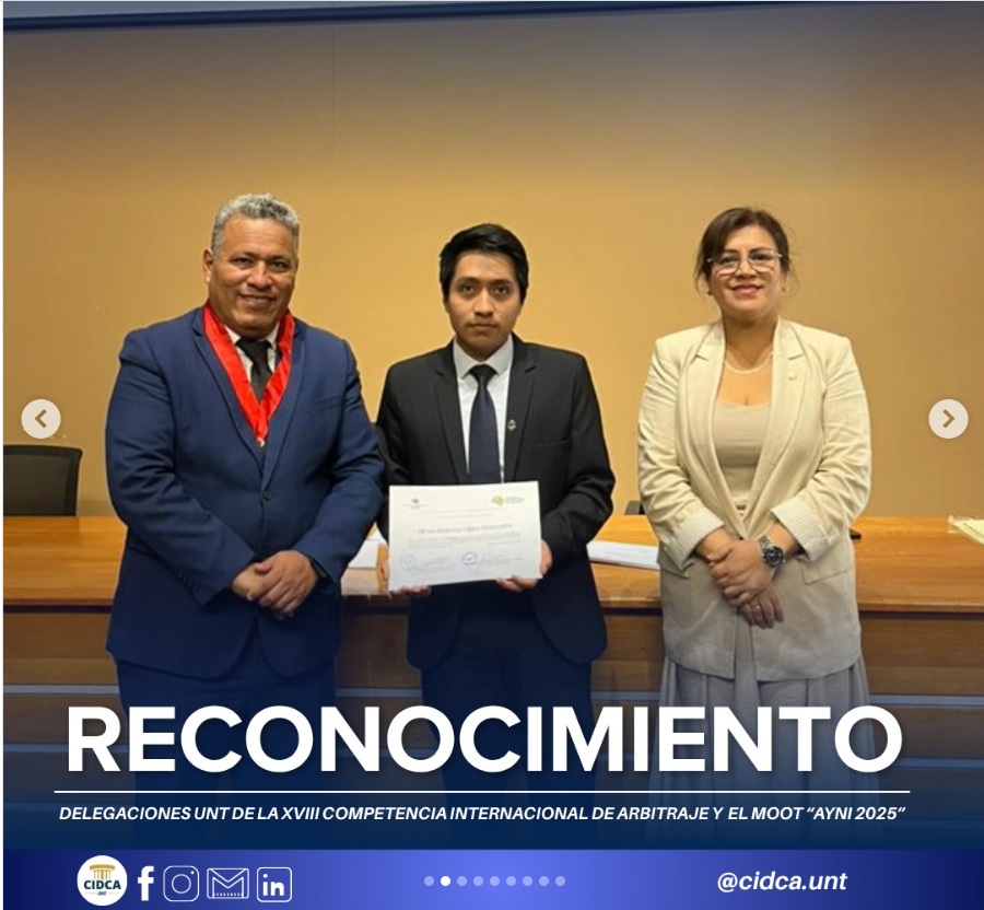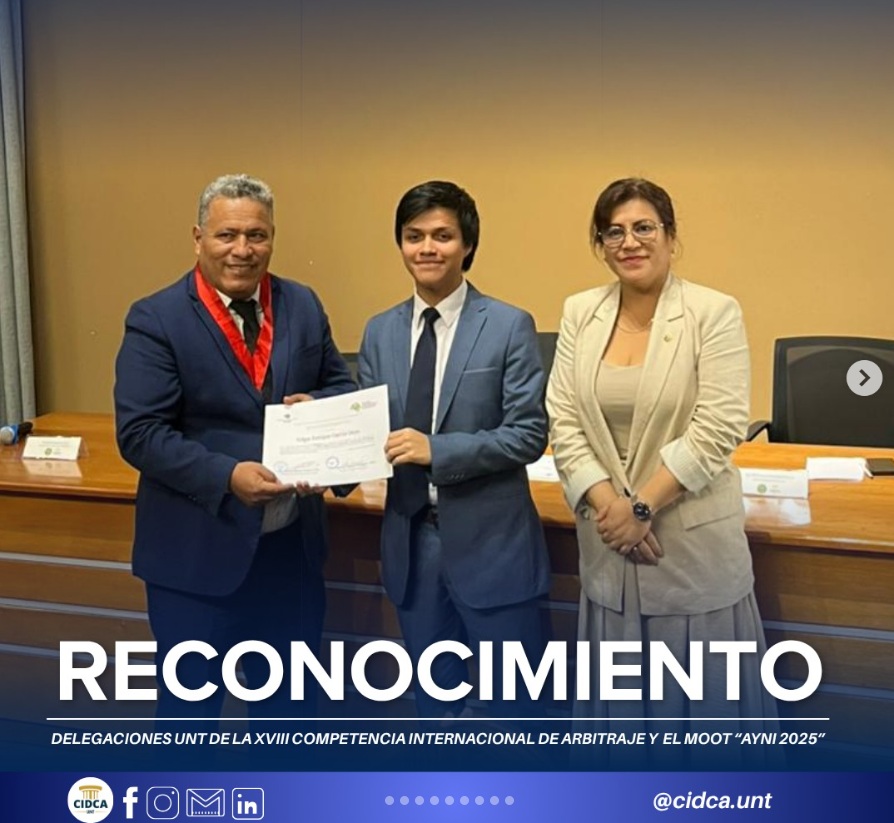 Mediante Acuerdo de Consejo de Facultad, se reconoció al equipo integrado por los estudiantes 𝗠𝗮𝗿𝗶𝗻𝗮 𝗟𝗶𝘇𝗲𝘁𝗵 𝗚𝗼𝗻𝘇𝗮𝗹𝗲𝘀 𝗧𝗼𝗿𝗿𝗲𝘀, 𝗣𝗲𝗿𝗰𝘆 𝗥𝗶𝗰𝗵𝗮𝗿𝗱 𝗩𝗶𝗹𝗹𝗮𝗻𝘂𝗲𝘃𝗮 𝗚𝗼𝗻𝘇𝗮́𝗹𝗲𝘇, 𝗝𝗲𝘀𝘂́𝘀 𝗱𝗲𝗹 𝗥𝗼𝗰𝗶́𝗼 𝗣𝗲𝗿𝗲𝗱𝗮 𝗭𝗲𝗹𝗮𝗱𝗮 y 𝗥𝗼𝘀𝘀𝗺𝗲𝗿𝘆 𝗔𝗻𝗴𝗲́𝗹𝗶𝗰𝗮 𝗧𝗼𝗿𝗿𝗲𝘀 𝗕𝗿𝗶𝗰𝗲𝗻̃𝗼, quienes representaron a la Facultad de Derecho y Ciencia Política de la Universidad Nacional de Trujillo en el 𝗠𝗼𝗼𝘁 𝗖𝗼𝘂𝗿𝘁 𝗔𝗬𝗡𝗜 𝟮𝟬𝟮𝟱, obteniendo el Primer Puesto a nivel general.