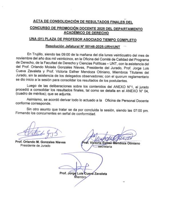 Mediante Acuerdo de Consejo de Facultad, se reconoció al equipo integrado por los estudiantes 𝗠𝗮𝗿𝗶𝗻𝗮 𝗟𝗶𝘇𝗲𝘁𝗵 𝗚𝗼𝗻𝘇𝗮𝗹𝗲𝘀 𝗧𝗼𝗿𝗿𝗲𝘀, 𝗣𝗲𝗿𝗰𝘆 𝗥𝗶𝗰𝗵𝗮𝗿𝗱 𝗩𝗶𝗹𝗹𝗮𝗻𝘂𝗲𝘃𝗮 𝗚𝗼𝗻𝘇𝗮́𝗹𝗲𝘇, 𝗝𝗲𝘀𝘂́𝘀 𝗱𝗲𝗹 𝗥𝗼𝗰𝗶́𝗼 𝗣𝗲𝗿𝗲𝗱𝗮 𝗭𝗲𝗹𝗮𝗱𝗮 y 𝗥𝗼𝘀𝘀𝗺𝗲𝗿𝘆 𝗔𝗻𝗴𝗲́𝗹𝗶𝗰𝗮 𝗧𝗼𝗿𝗿𝗲𝘀 𝗕𝗿𝗶𝗰𝗲𝗻̃𝗼, quienes representaron a la Facultad de Derecho y Ciencia Política de la Universidad Nacional de Trujillo en el 𝗠𝗼𝗼𝘁 𝗖𝗼𝘂𝗿𝘁 𝗔𝗬𝗡𝗜 𝟮𝟬𝟮𝟱, obteniendo el Primer Puesto a nivel general.